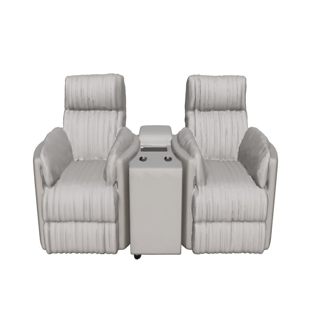 -Construcción del asiento: muelles ensacados. -Cojín firme para asiento y respaldo. -Diseño de reposabrazos curvo. -Consola con 2 portavasos. -Consola USB. -Puerto USB